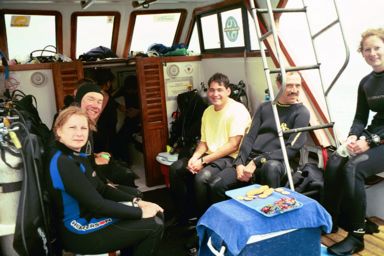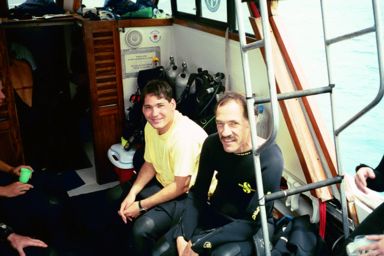 Then all departed for snorkelling except for the Chosen Seven, who transferred via zodiac to a small dive boat. They had already selected dive gear for all of us based on sizes. I was buddied with Dr. Gary Williams, the invertebrate zoology curator from the California Academy of Science along on this trip.