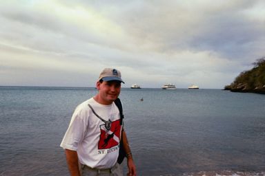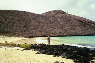Today featured an uncomfortably early wake-up for those interested in visiting Post Office Bay, a bay on Floreana Island on which whalers put a barrel in which to deposit mail. Then a passing whaler on their way home would retrieve mail to bring it back. Some of us departed on zodiacs at 6:30 after a brief tea and pastry to have a brief tour near Post Office Bay. We saw several sea lion colonies/beaches, and some sea turtles, and two penguins! They are about ten inches high and can swim terribly fast under water. They swim just under the surface of the water with their wings outstretched. Occasionally they will stick their head above the water, almost looking like a duck. Then we landed near the Post Office Barrel where I left six postcards and picked up one postcard destined for San Francisco.